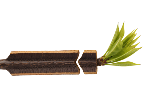 Revealing the inner beauty and vibrant life force of a sprouting branch, cut open to showcase nature's resilience, perfect for growth and renewal themes