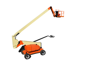 Construction telescopic tower or work platform for people to work at height on a white isolated background. Powerful work platform for lifting construction workers up. Element for design.