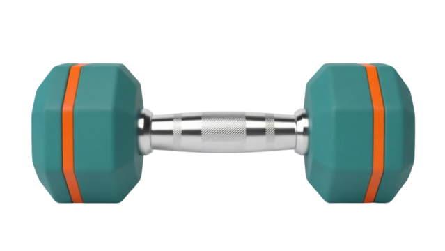 Isolated dumbbell with teal coating and orange stripe for strength training and fitness
