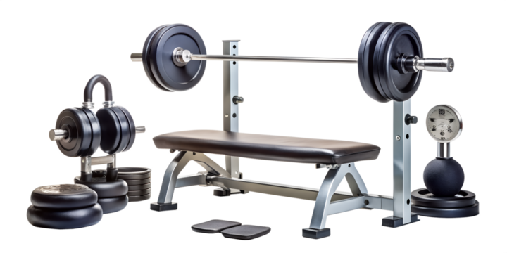 Isolated incline bench press with barbell and weight plates, fitness gym equipment