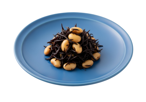 Magenta stems with oval leaves are rising from light blue mound, flat style, transparent background