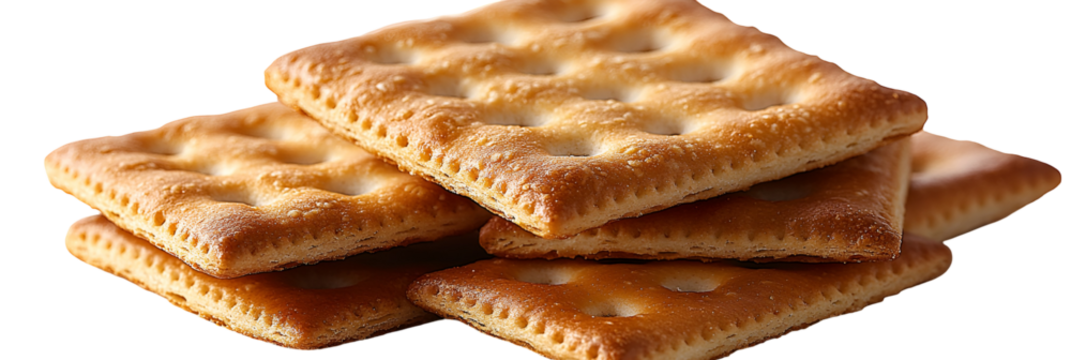 Stacked crispy light brown treats against transparent background
