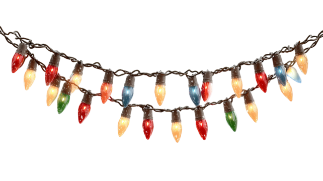 String of christmas lights isolated on white background festive fairy light garland glowing bulbs decoration high resolution cutout for design and print