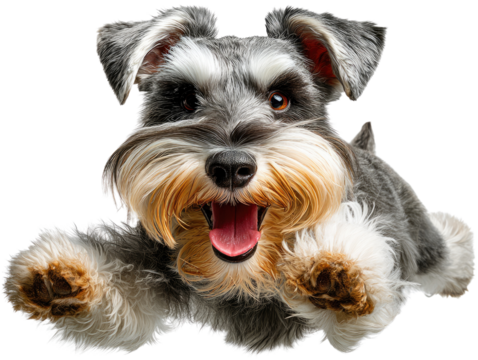 Playful blue dog with bow tie on transparent background