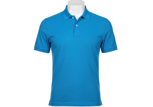 Isolated light blue polo shirt on mannequin, short sleeves, smart casual fashion apparel
