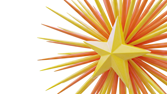 Yellow Sun With Spiky Rays spikes light isolated on a transparent background