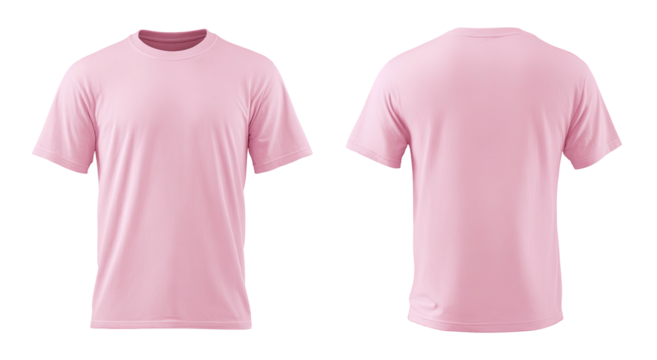Front and back views of a blank white t-shirt, isolated on a black background. Simple garment for design mockup