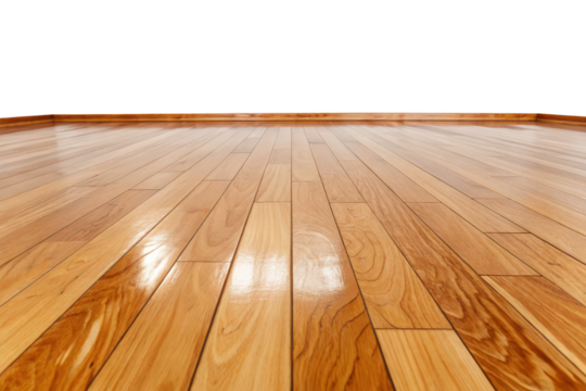 Rustic wooden planks surface perspective isolated on transparent background. Empty room with wood floor isolated on white background.