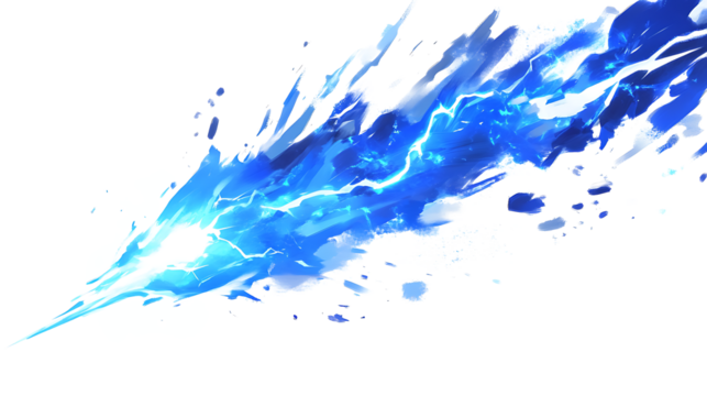 Electric blue lightning bolt striking, dynamic storm energy and electricity, power weather effect on transparent background