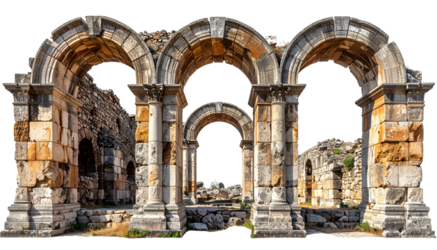 Ancient stone ruins showcasing arched openings, weathered details, and historical architecture