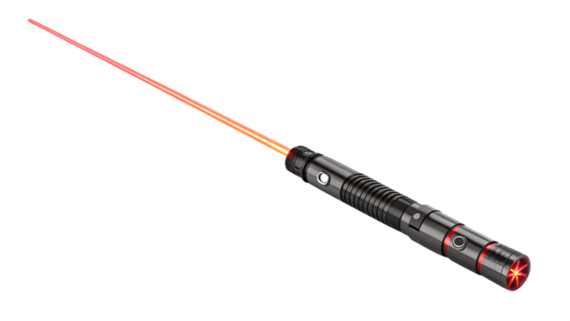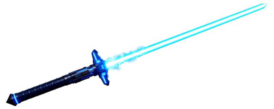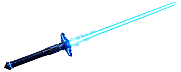 A glowing light saber emitting a bright beam of energy on a transparent background