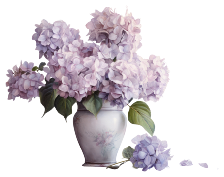 PNG Close up on pale puple hydrangea in vase blossom flower lilac.