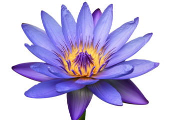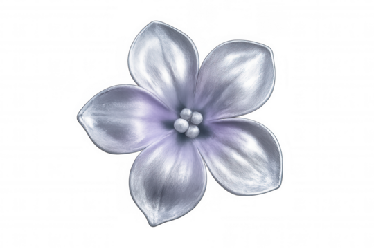 Close-up of a metallic lilac flower blooming, isolated on a transparent background, perfect for design projects