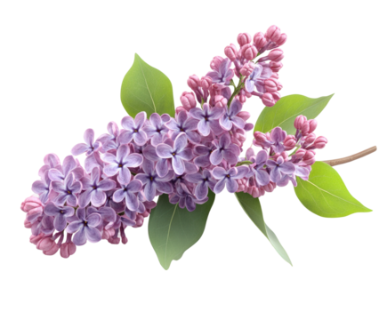 Lilac Branch with Purple Flowers and Green Leaves, Transparent Background. Perfect for: Spring festivals, weddings, home décor