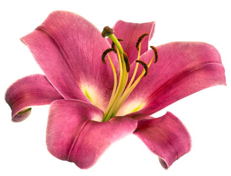 Pink  Lily  flower  on a white isolated background with clipping path.  Closeup. For design.  Transparent background