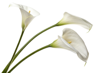 Elegant calla lilies gracefully arching with their smooth white petals and vibrant green stems create serene and beautiful floral arrangement