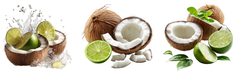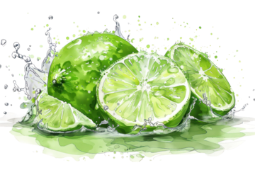 Fresh lime slices and cilantro splashing in water, creating a vibrant culinary scene perfect for food photography