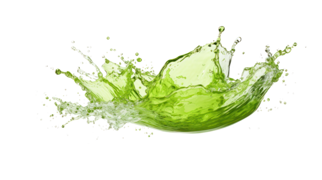 green liquid water or tea oil. neon lime liquid flows and splashes on a transparent background