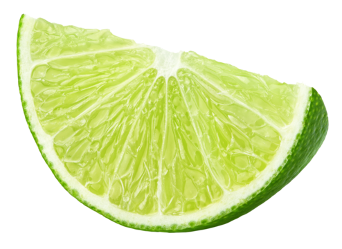 Fresh lime wedge displaying vibrant green color and textured surface ideal for cocktails, garnishes, and culinary uses