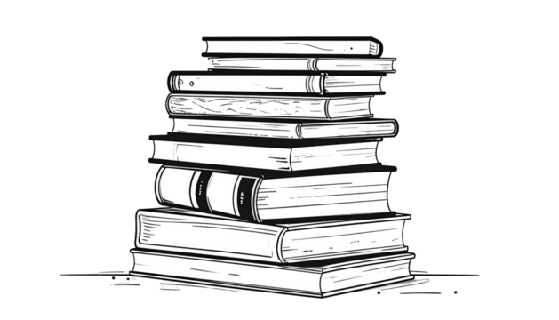 Stack of books illustration. White books against black background, line drawing aesthetic