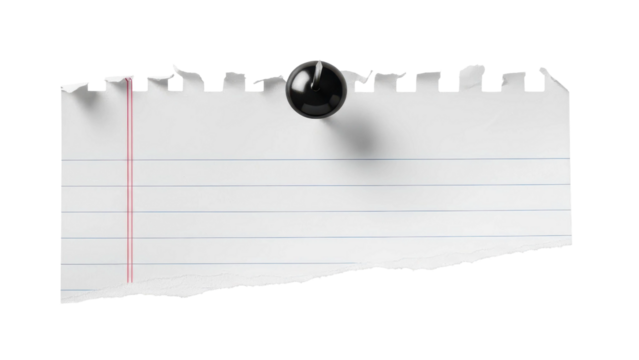 Torn lined paper secured with black thumbtack