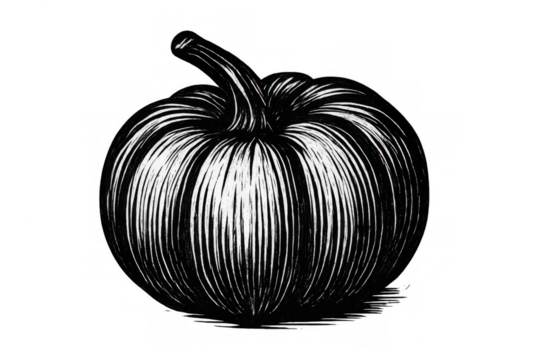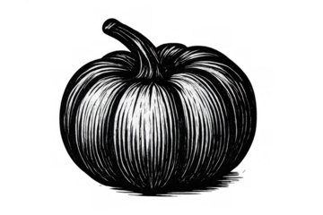 Vintage style illustration of a pumpkin with detailed linework, isolated on a transparent background