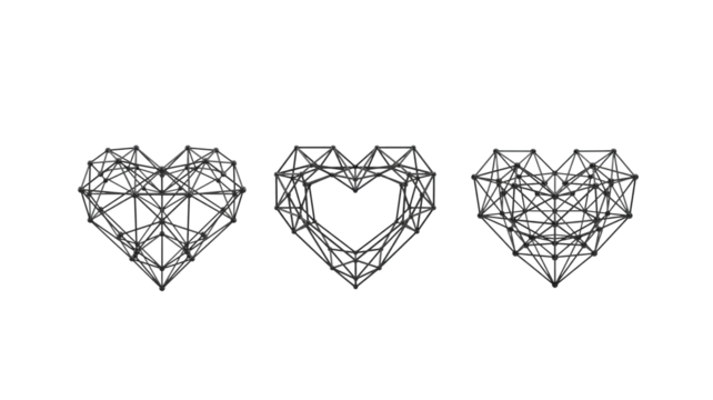 An abstract wireframe heart symbolizing connection, love, and modern digital design.