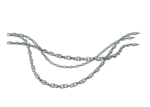 Metallic industrial grade chain lying in a heap. PNG clipart isolated on transparent background