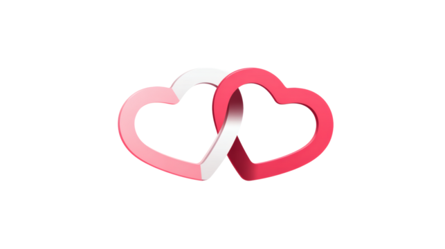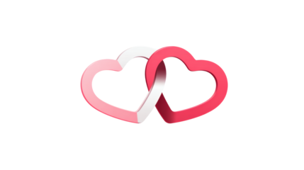 Two interlocked hearts symbolizing love and unity, flat minimal style, isolated on a white background