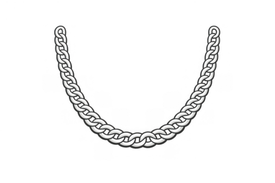Silver metal curb chain necklace design element with metallic links and reflections on a transparent background