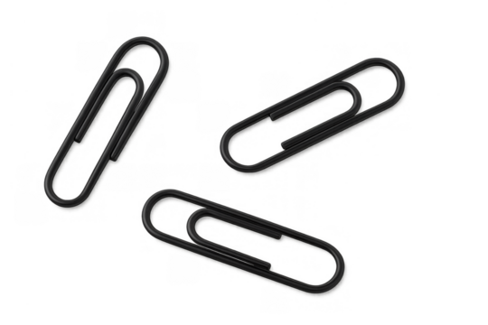 Black paper clips scattered, linking documents, essential office supplies for organization and paperwork