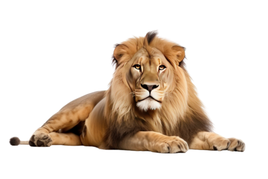 Majestic male lion lying down on transparent background