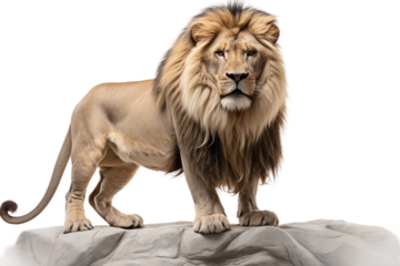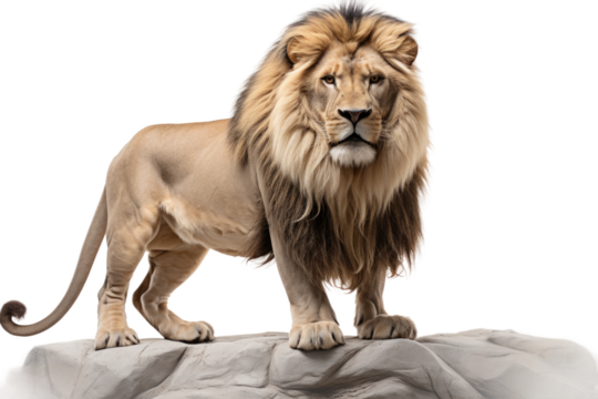 Set of a lion statue in a regal sitting position isolated on transparent background.