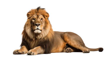 Relaxing lioness lying gracefully with calm expression for wildlife photography,Cutout, Isolated on White Background