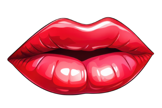 Glossy stylized lips illustration on transparent background