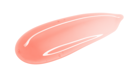 Glossy pink lip gloss smear with natural curve and light reflections, transparent edges, white background, PNG