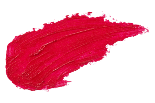 Red lipstick swatch isolated on transparent background. Brush stroke of lipstick or wet eye shadow for design.