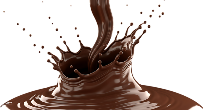 Dynamic vibrant gradient liquid splash with droplets on transparent background