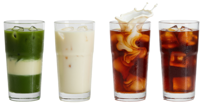 Iced coffee layered beverage isolated on a transparent background