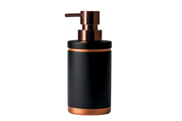 Modern black and copper soap dispenser bathroom accessory product on transparent background