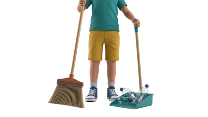 Green plastic garbage bag with tied knot on top, waste disposal, pollution, and recycling concept on transparent background