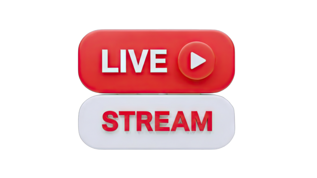 3D Live Stream Button with Play Icon on transparent background