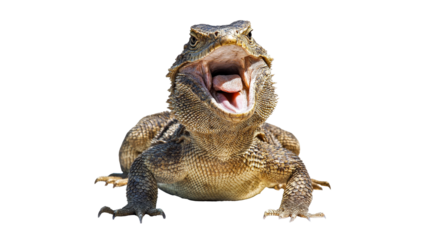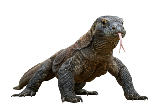 Isolated Detailed Komodo Dragon Walking Slowly with Tongue Out