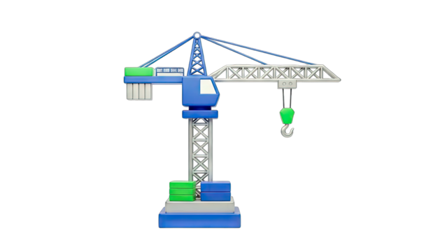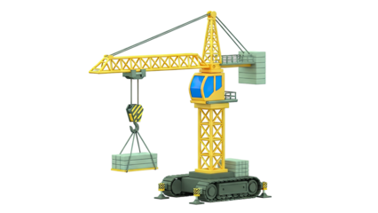 Isolated Yellow Construction Crane Lifting Load Cartoon Style