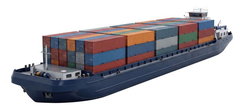 Container ship loaded with colorful containers isolated on transparent background, ready for global trade