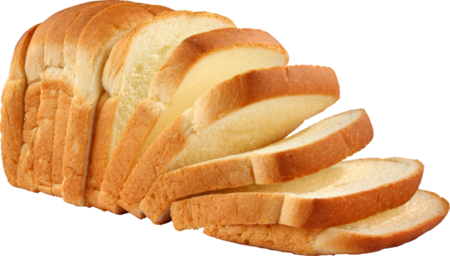 Sliced loaf of wheat bread isolated on white  or transparent background