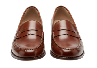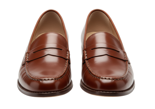 Elegant tan leather loafer isolated PNG, classic slip-on shoe for men s fashion and formal wear on transparent background