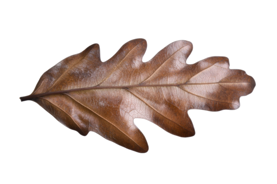 Brown Oak Leaf with Veins and Lobes on Transparent PNG