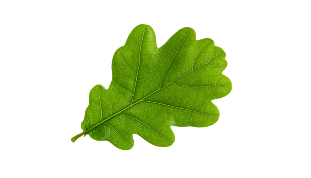 Stylized green oak leaf illustration on transparent background