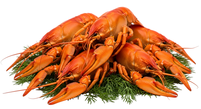 Red Cooked Claw Lobster isolated on white, Steam Canadian lobster isolated on white background PNG File.
